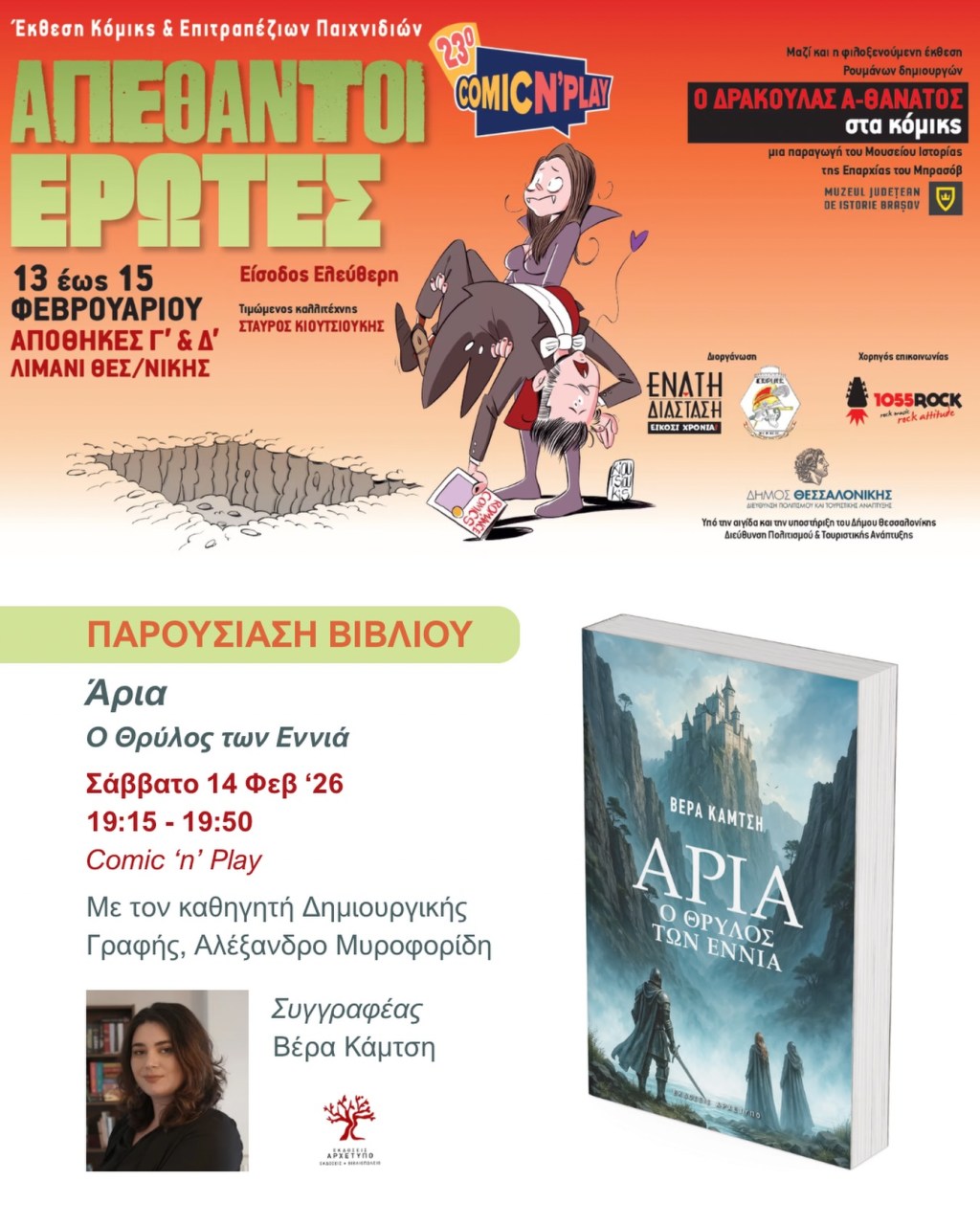 Το Σάββατο 14 Φεβρουαρίου 2026, στις 19:15 – 19:50 θα γίνει παρουσίαση του μυθιστορήματός μου «Άρια: Ο Θρύλος των Εννιά» από τις Εκδόσεις Αρχέτυπο!